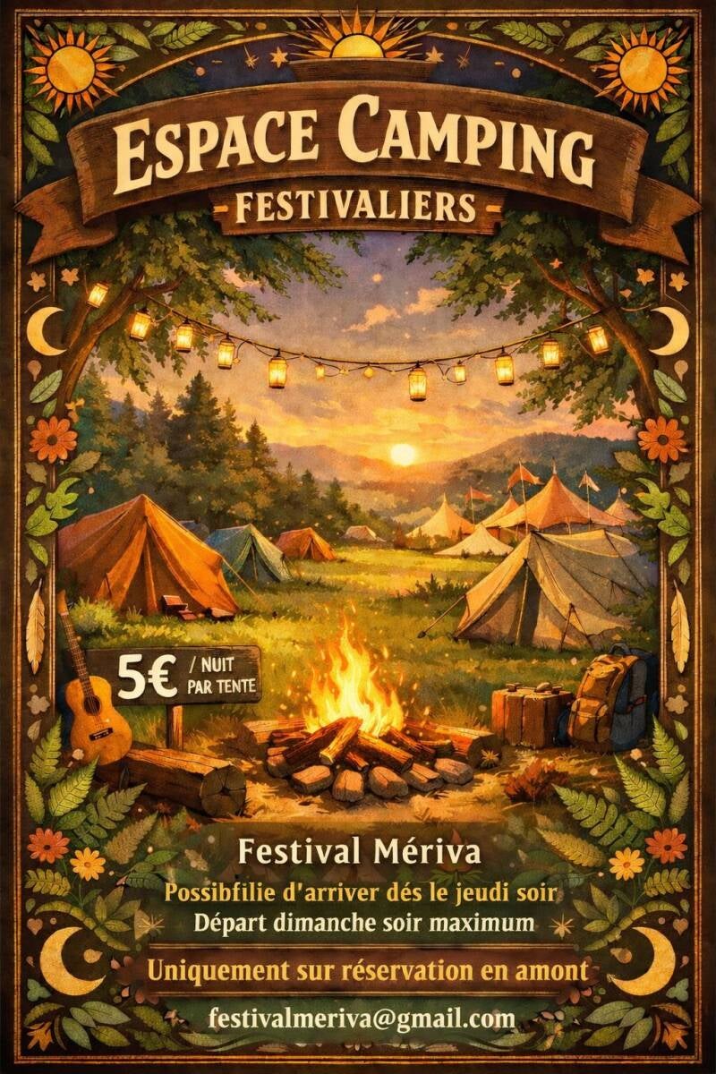 Pour les festivaliers venant de plus loin ou souhaitant profiter pleinement du week-end, un espace camping est mis à disposition à proximité du Festival Mériva.